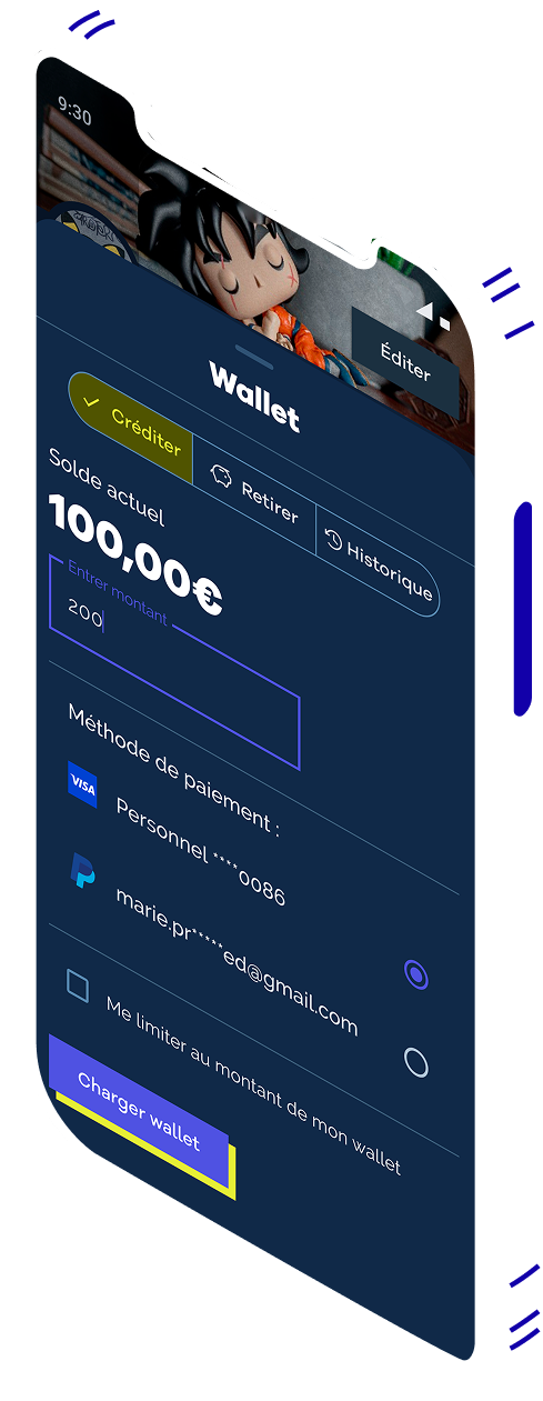Ton wallet intégré centralise tes paiements, ventes et retraits, avec Stripe comme partenaire sécurisé.